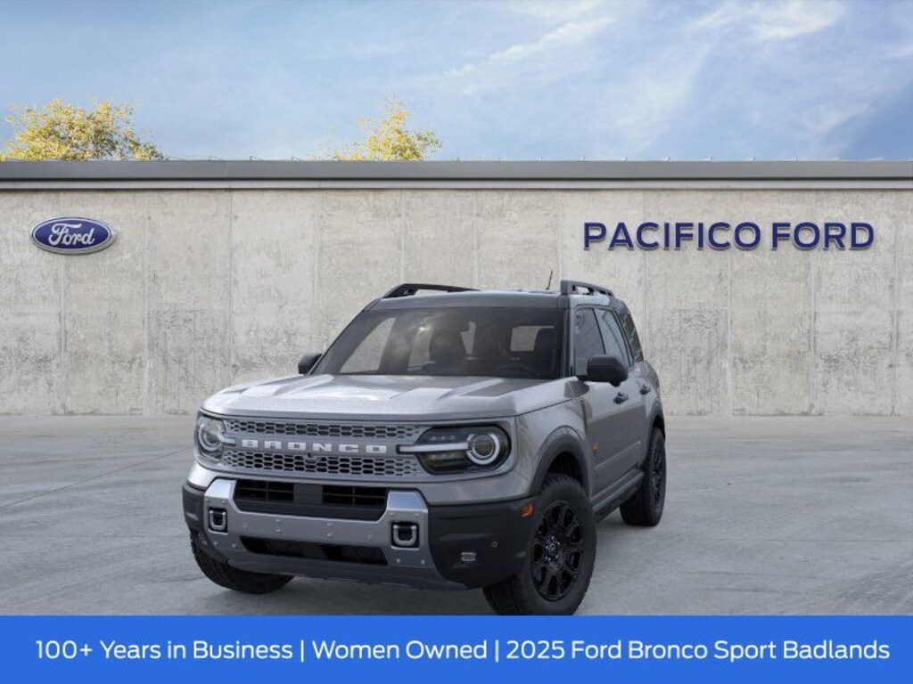 Pacifico Ford is proud to present you with another great new Ford. This 2025 Ford Bronco Sport Badlands is loaded with the following Factory Options:Equipment Group 400A, 4-Wheel Disc Brakes, 6 Speakers, ABS brakes, Air Conditioning, Alloy wheels, AM/FM radio: SiriusXM, AM/FM Stereo, Auto High-beam Headlights, Auto-dimming Rear-View mirror, Automatic temperature control, Brake assist, Compass, Delay-off headlights, Driver door bin, Driver vanity mirror, Dual front impact airbags, Dual front side impact airbags, Electronic Stability Control, Emergency communication system: SYNC 4 911 Assist, Four wheel independent suspension, Front & Rear Floor Liners w/o Carpet Mats, Front anti-roll bar, Front Bucket Seats, Front Center Armrest, Front fog lights, Front License Plate Bracket, Front reading lights, Fully automatic headlights, Garage door transmitter, Heated door mirrors, Heated front seats, Heated steering wheel, Illuminated entry, Knee airbag, Leather Trimmed Front Bucket Seats, Low tire pressure warning, Memory seat, Occupant sensing airbag, Outside temperature display, Overhead airbag, Overhead console, Panic alarm, Passenger door bin, Passenger vanity mirror, Power door mirrors, Power driver seat, Power passenger seat, Power steering, Power windows, Radio data system, Rear anti-roll bar, Rear reading lights, Rear seat center armrest, Rear window defroster, Rear window wiper, Remote keyless entry, Security system, SiriusXM, Speed control, Speed-sensing steering, Speed-Sensitive Wipers, Split folding rear seat, Steering wheel mounted audio controls, SYNC 4 w/Enhanced Voice Recognition, Tachometer, Telescoping steering wheel, Tilt steering wheel, Traction control, Trip computer, Variably intermittent wipers, and Wheels: 17" Matte Black-Painted Aluminum. Recent Arrival!