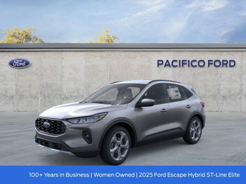 Pacifico Ford is proud to present you with another great new Ford. This 2025 Ford Escape Hybrid ST-Line Select is loaded with the following Factory Options:Equipment Group 400A (Electronic Fuel Door Release, Neutral Towing Capability, and Pedestrian Alert Sounder), 2.5L iVCT, 2.91 Axle Ratio, 4-Wheel Disc Brakes, 6 Speakers, ABS brakes, Air Conditioning, Alloy wheels, AM/FM radio: SiriusXM, AM/FM Stereo, Auto High-beam Headlights, Automatic temperature control, Brake assist, Bumpers: body-color, Compass, Delay-off headlights, Driver door bin, Driver vanity mirror, Dual front impact airbags, Dual front side impact airbags, Electronic Stability Control, Emergency communication system: SYNC 4 911 Assist, FordPass Connect, Four wheel independent suspension, Front & Rear Floor Liners w/Carpet Mats, Front anti-roll bar, Front Bucket Seats, Front Center Armrest, Front dual zone A/C, Front fog lights, Front reading lights, Fully automatic headlights, Heated door mirrors, Heated front seats, Heated steering wheel, Heated Vinyl/Cloth Front Sport Contour Bucket Seats, Illuminated entry, Internet access capable: FordPass Connect 4G, Knee airbag, Low tire pressure warning, Occupant sensing airbag, Outside temperature display, Overhead airbag, Overhead console, Panic alarm, Passenger door bin, Passenger vanity mirror, Power door mirrors, Power driver seat, Power Liftgate, Power steering, Power windows, Radio data system, Rear anti-roll bar, Rear reading lights, Rear seat center armrest, Rear window defroster, Rear window wiper, Remote keyless entry, Speed control, Speed-sensing steering, Speed-Sensitive Wipers, Split folding rear seat, Spoiler, Sport steering wheel, Steering wheel mounted audio controls, SYNC 4, Tachometer, Telescoping steering wheel, Tilt steering wheel, Traction control, Trip computer, Variably intermittent wipers, and Wheels: 18" Rock Metallic Painted Aluminum. Recent Arrival!