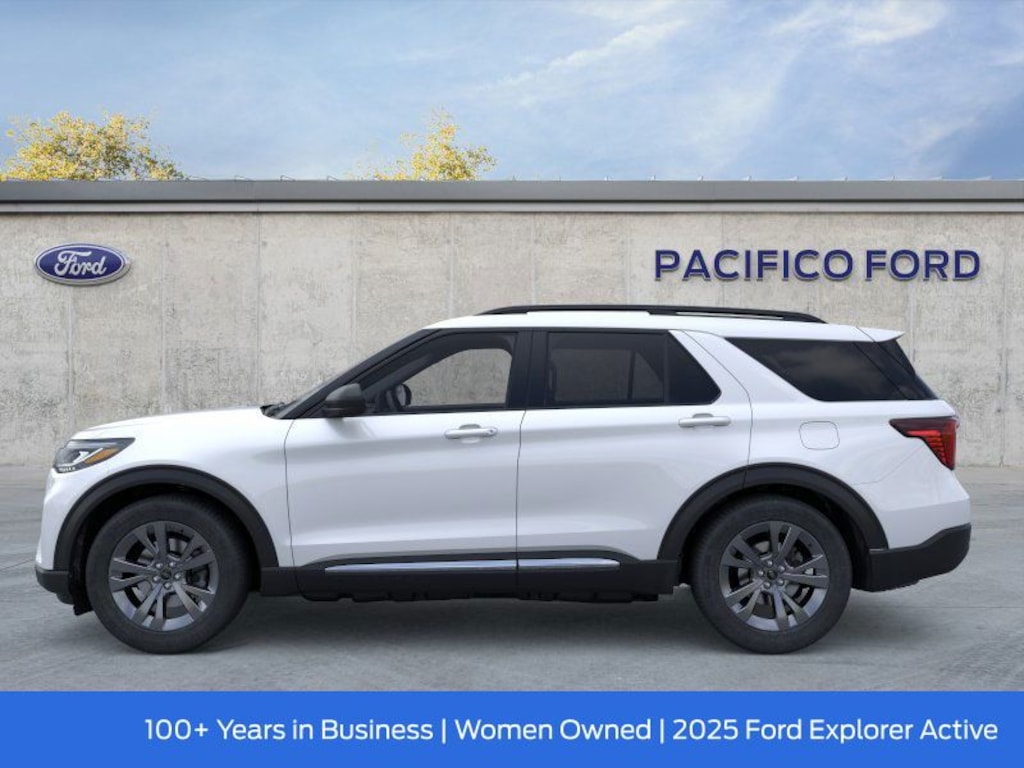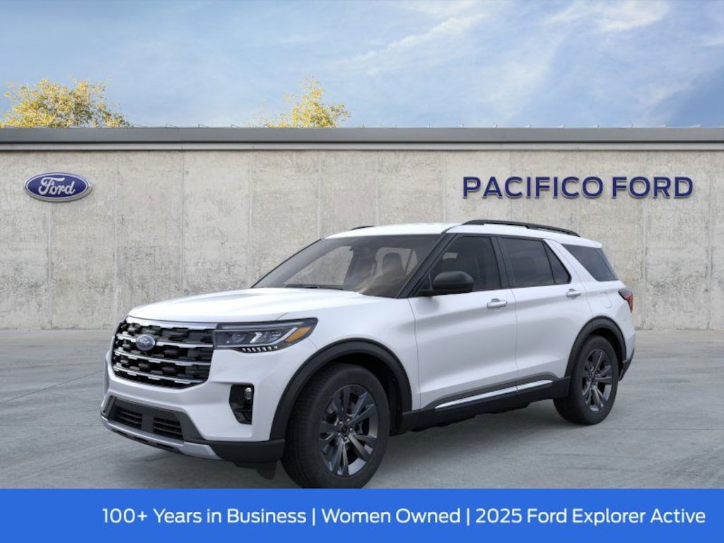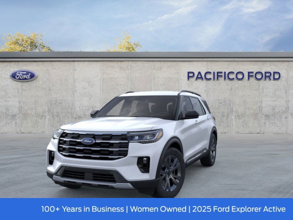 Pacifico Ford is proud to present you with another great new Ford. This 2025 Ford Explorer Active is loaded with the following Factory Options:Active Comfort Package (Front Fascia, Heated ActiveX Seating Material Captain's Chairs, Heated Steering Wheel, Remote Start System, Second Row HVAC Controls, and Universal Garage Door Opener (UGDO)), Equipment Group 200A Standard Package, 4WD, 3.58 Non-Limited Slip Rear Axle, 3rd row seats: bench, 4-Wheel Disc Brakes, 6 Speakers, ABS brakes, Air Conditioning, Alloy wheels, AM/FM radio: SiriusXM with 360L, AM/FM Stereo, Apple CarPlay/Android Auto, Auto High-beam Headlights, Automatic temperature control, Brake assist, Bumpers: body-color, Compass, Delay-off headlights, Driver door bin, Driver vanity mirror, Dual front impact airbags, Dual front side impact airbags, Electronic Stability Control, Emergency communication system: 911 Assist, Exterior Parking Camera Rear, Four wheel independent suspension, Front & 2nd Rows Floor Liners w/Carpet Floor Mats, Front anti-roll bar, Front Bucket Seats, Front Center Armrest, Front dual zone A/C, Front License Plate Bracket, Front reading lights, Fully automatic headlights, Heated door mirrors, Heated front seats, Illuminated entry, Knee airbag, Leather steering wheel, Low tire pressure warning, Navigation System, Occupant sensing airbag, Outside temperature display, Overhead airbag, Overhead console, Panic alarm, Passenger door bin, Passenger vanity mirror, Power door mirrors, Power driver seat, Power Liftgate, Power passenger seat, Power steering, Power windows, Rear air conditioning, Rear anti-roll bar, Rear reading lights, Rear window defroster, Rear window wiper, Remote keyless entry, Security system, Speed control, Speed-sensing steering, Speed-Sensitive Wipers, Split folding rear seat, Spoiler, Steering wheel mounted audio controls, Tachometer, Telescoping steering wheel, Tilt steering wheel, Traction control, Trip computer, Unique Heated Cloth Captain's Chairs, Variably intermittent wipers, Wheels: 18" Sparkle Silver-Painted Aluminum, and Wheels: 20" Carbonized Gray-Painted Aluminum.