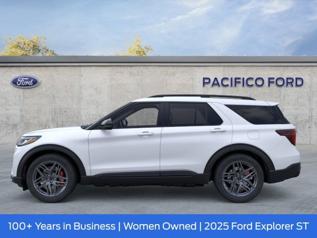 Pacifico Ford is proud to present you with another great new Ford. This 2025 Ford Explorer ST is loaded with the following Factory Options:Equipment Group 400A Standard Package, Sun and Sound Package (B&O Sound System by Bang & Olufsen, Multicontour Seats w/Front Active Motion, and Panoramic Vista Roof w/Power Shade), 4WD, 10 Speakers, 3.58 Non-Limited Slip Rear Axle, 3rd row seats: bench, 4-Wheel Disc Brakes, ABS brakes, Air Conditioning, Alloy wheels, AM/FM radio: SiriusXM with 360L, Apple CarPlay/Android Auto, Auto High-beam Headlights, Auto-dimming door mirrors, Auto-dimming Rear-View mirror, Automatic temperature control, Brake assist, Bumpers: body-color, Compass, Delay-off headlights, Driver door bin, Driver vanity mirror, Dual front impact airbags, Dual front side impact airbags, Electronic Stability Control, Emergency communication system: 911 Assist, Exterior Parking Camera Rear, Four wheel independent suspension, Front anti-roll bar, Front Bucket Seats, Front Center Armrest, Front dual zone A/C, Front fog lights, Front reading lights, Fully automatic headlights, Garage door transmitter, Heated door mirrors, Heated front seats, Heated rear seats, Heated steering wheel, Heated/Ventilated Miko Sport Captain's Chairs, Illuminated entry, Knee airbag, Leather steering wheel, Low tire pressure warning, Memory seat, Navigation System, Occupant sensing airbag, Outside temperature display, Overhead airbag, Overhead console, Panic alarm, Passenger door bin, Passenger vanity mirror, Power door mirrors, Power driver seat, Power Liftgate, Power passenger seat, Power steering, Power windows, Radio: B&O Sound System by Bang & Olufsen, Rain sensing wipers, Rear air conditioning, Rear anti-roll bar, Rear reading lights, Rear window defroster, Rear window wiper, Remote keyless entry, Security system, Speed control, Speed-sensing steering, Speed-Sensitive Wipers, Split folding rear seat, Spoiler, Sport steering wheel, Steering wheel mounted audio controls, Tachometer, Telescoping steering wheel, Tilt steering wheel, Traction control, Trip computer, Turn signal indicator mirrors, Variably intermittent wipers, Ventilated front seats, and Wheels: 21" Magnetite-Painted Aluminum.
