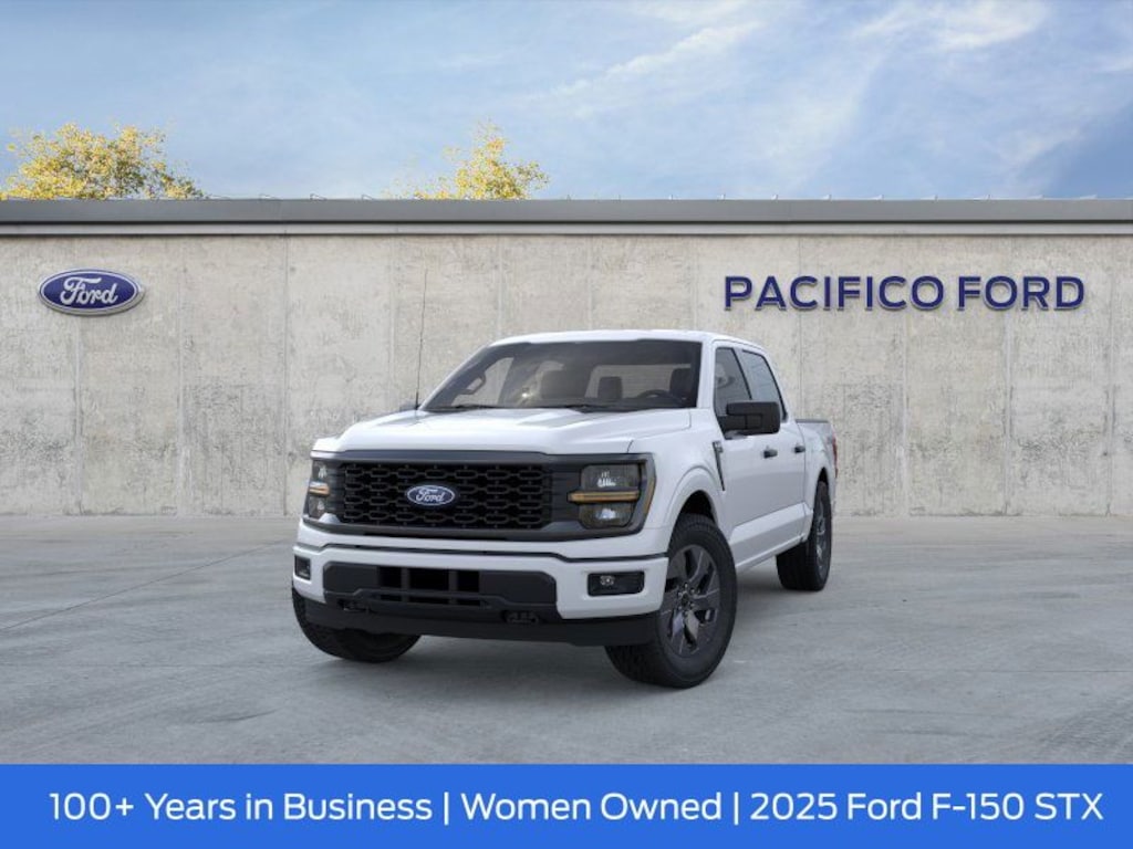 Pacifico Ford is proud to present you with another great new Ford. This 2025 Ford F-150 STX is loaded with the following Factory Options:Equipment Group 200A Mid (LED Fog Lamps w/LED Cornering Lamp and Wheels: 20" Dark Gray w/Machined Aluminum), GVWR: 6,650 lbs Payload Package, 4WD, 3.55 Axle Ratio, 4-Wheel Disc Brakes, 6 Speakers, ABS brakes, Air Conditioning, Alloy wheels, AM/FM radio: SiriusXM with 360L, Auto High-beam Headlights, Brake assist, Bumpers: body-color, Compass, Delay-off headlights, Driver door bin, Dual front impact airbags, Dual front side impact airbags, Electronic Stability Control, Emergency communication system: SYNC 4 911 Assist, Front anti-roll bar, Front Bucket Seats, Front Center Armrest, Front License Plate Bracket, Front reading lights, Front wheel independent suspension, Fully automatic headlights, Heated door mirrors, Illuminated entry, Low tire pressure warning, Occupant sensing airbag, Outside temperature display, Overhead airbag, Overhead console, Panic alarm, Passenger door bin, Passenger vanity mirror, Power door mirrors, Power steering, Power windows, Radio data system, Radio: AM/FM Stereo w/SiriusXM 360L, Rear Parking Sensors, Rear step bumper, Rear window defroster, Remote keyless entry, Security system, Speed control, Split folding rear seat, Steering wheel mounted audio controls, SYNC 4 w/Enhanced Voice Recognition, Tachometer, Telescoping steering wheel, Tilt steering wheel, Traction control, Tray Style Floor Liner w/Carpet Mats, Trip computer, Unique Sport Cloth 40/Console/40 Front-Seats, Variably intermittent wipers, Voltmeter, and Wheels: 18" Gloss Black.