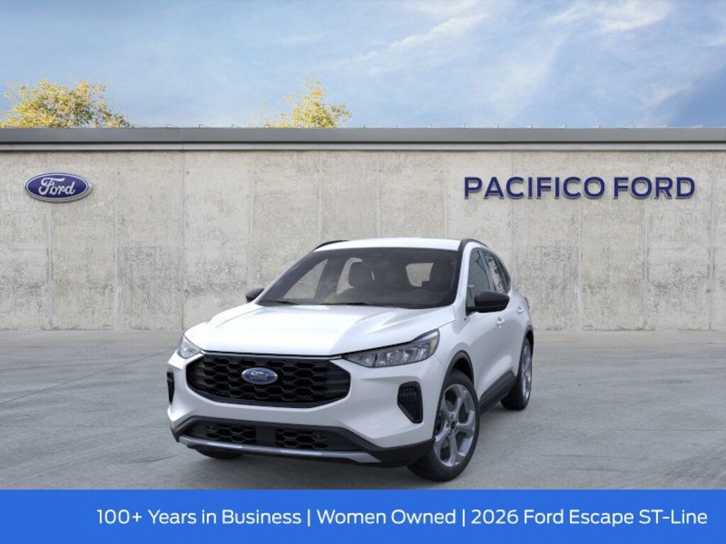 Pacifico Ford is proud to present you with another great new Ford. This 2026 Ford Escape ST-Line is loaded with the following Factory Options:Equipment Group 300A (3.81 Axle Ratio, 4-Way Manual Front Passenger Seat, 8-Way Power Driver Seat, Ford App, Partial Vinyl/Cloth Front Sport Contour Bucket Seats with Red Stitching, Radio: AM/FM Stereo with SiriusXM 360L, SYNC 4, and Wheels: 18" Rock Metallic Painted Aluminum), AWD, 4-Wheel Disc Brakes, 6 Speakers, ABS brakes, Air Conditioning, Alloy wheels, AM/FM radio: SiriusXM 360L, Auto High-beam Headlights, Automatic temperature control, Brake assist, Bumpers: body-color, Compass, Delay-off headlights, Driver door bin, Driver vanity mirror, Dual front impact airbags, Dual front side impact airbags, Electronic Stability Control, Emergency communication system: SYNC 4 911 Assist, Four wheel independent suspension, Front and Rear Floor Liners with Carpet Mats, Front anti-roll bar, Front Bucket Seats, Front Center Armrest, Front dual zone A/C, Front License Plate Bracket, Front reading lights, Fully automatic headlights, Heated steering wheel, Illuminated entry, Knee airbag, Low tire pressure warning, Occupant sensing airbag, Outside temperature display, Overhead airbag, Overhead console, Panic alarm, Passenger door bin, Passenger vanity mirror, Power door mirrors, Power driver seat, Power Liftgate, Power steering, Power windows, Radio data system, Rear anti-roll bar, Rear reading lights, Rear seat center armrest, Rear window defroster, Rear window wiper, Remote keyless entry, Speed control, Speed-sensing steering, Speed-Sensitive Wipers, Split folding rear seat, Spoiler, Sport steering wheel, Steering wheel mounted audio controls, Tachometer, Telescoping steering wheel, Tilt steering wheel, Traction control, Trip computer, and Variably intermittent wipers. Recent Arrival!