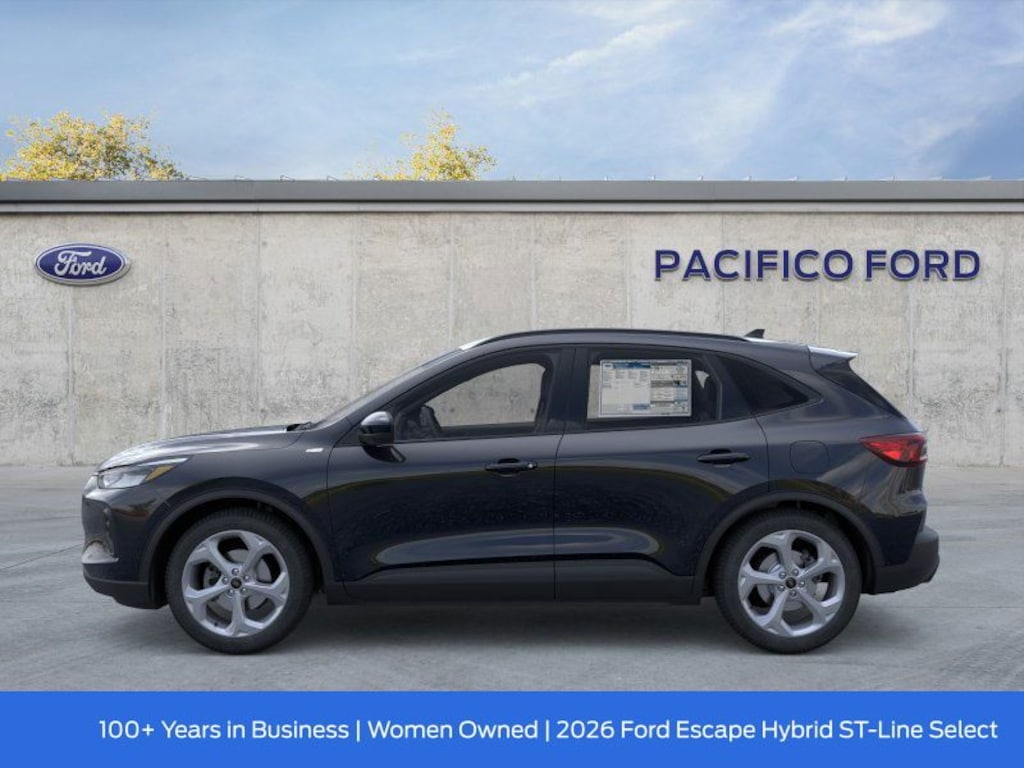 Pacifico Ford is proud to present you with another great new Ford. This 2026 Ford Escape Hybrid ST-Line Select is loaded with the following Factory Options:Equipment Group 400A (2.91 Axle Ratio, 4-Way Manual Front Passenger Seat, 8-Way Power Driver Seat, Electronic Fuel Door Release, Ford App, Neutral Towing Capability, Partial Vinyl/Cloth Heated Front Sport Contour Bucket Seats with Red Stitching, Pedestrian Alert Sounder, Radio: AM/FM Stereo with SiriusXM 360L, SYNC 4, and Wheels: 18" Rock Metallic Painted Aluminum), 2.5L iVCT, 10-Way Power Driver's Seat w/Memory, 4-Wheel Disc Brakes, 6 Speakers, ABS brakes, Air Conditioning, Alloy wheels, AM/FM radio: SiriusXM 360L, Auto High-beam Headlights, Automatic temperature control, Brake assist, Bumpers: body-color, Compass, Delay-off headlights, Driver door bin, Driver vanity mirror, Dual front impact airbags, Dual front side impact airbags, Electronic Stability Control, Emergency communication system: SYNC 4 911 Assist, Four wheel independent suspension, Front and Rear Floor Liners with Carpet Mats, Front anti-roll bar, Front Bucket Seats, Front Center Armrest, Front dual zone A/C, Front fog lights, Front License Plate Bracket, Front reading lights, Fully automatic headlights, Heated door mirrors, Heated front seats, Heated steering wheel, Illuminated entry, Knee airbag, Low tire pressure warning, Memory seat, Occupant sensing airbag, Outside temperature display, Overhead airbag, Overhead console, Panic alarm, Passenger door bin, Passenger vanity mirror, Power door mirrors, Power driver seat, Power Liftgate, Power steering, Power windows, Radio data system, Rear anti-roll bar, Rear reading lights, Rear seat center armrest, Rear window defroster, Rear window wiper, Remote keyless entry, Speed control, Speed-sensing steering, Speed-Sensitive Wipers, Split folding rear seat, Spoiler, Sport steering wheel, Steering wheel mounted audio controls, Tachometer, Telescoping steering wheel, Tilt steering wheel, Traction control, Trip computer, and Variably intermittent wipers.