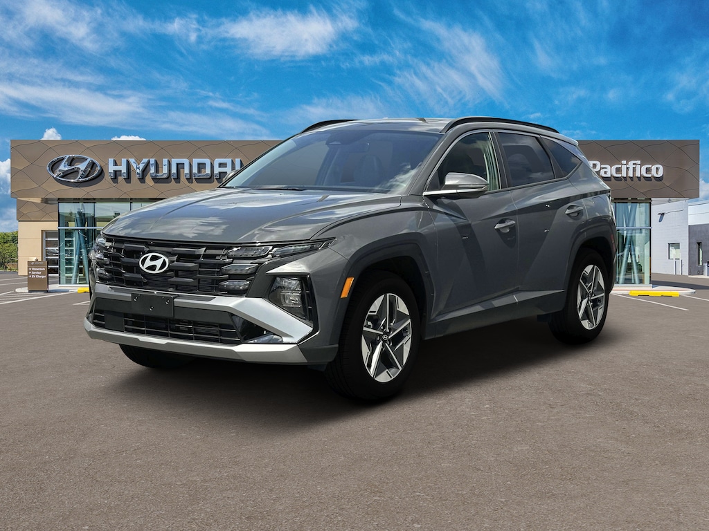 Pacifico Hyundai is proud to present you with another great new Hyundai. This 2025 Hyundai Tucson SEL Convenience is loaded with the following Factory Options:Option Group 01, AWD, 18" Alloy Wheels, 4-Wheel Disc Brakes, 6 Speakers, ABS brakes, Air Conditioning, Alloy wheels, AM/FM radio: SiriusXM, Apple CarPlay & Android Auto, Auto High-beam Headlights, Auto-dimming Rear-View mirror, Automatic temperature control, Brake assist, Bumpers: body-color, Cargo Blocks, Cargo Cover, Cargo Net, Cargo Tray, Carpeted Floor Mats, Delay-off headlights, Driver door bin, Driver vanity mirror, Dual front impact airbags, Dual front side impact airbags, Electronic Stability Control, Emergency communication system: Bluelink+, First Aid Kit, Four wheel independent suspension, Front anti-roll bar, Front Bucket Seats, Front Center Armrest, Front dual zone A/C, Front reading lights, Fully automatic headlights, H-Tex Seat Trim, Heated door mirrors, Heated Front Bucket Seats, Heated front seats, Illuminated entry, Leather steering wheel, Low tire pressure warning, Navigation System, Occupant sensing airbag, Outside temperature display, Overhead airbag, Overhead console, Panic alarm, Passenger door bin, Passenger vanity mirror, Power door mirrors, Power driver seat, Power Liftgate, Power moonroof, Power steering, Power windows, Radio data system, Radio: AM/FM/HD Audio System, Rear anti-roll bar, Rear reading lights, Rear seat center armrest, Rear side impact airbag, Rear window defroster, Rear window wiper, Remote keyless entry, Security system, Speed control, Split folding rear seat, Spoiler, Steering wheel mounted audio controls, Tachometer, Telescoping steering wheel, Tilt steering wheel, Tow Hitch, Traction control, Trip computer, Turn signal indicator mirrors, and Variably intermittent wipers. Recent Arrival!