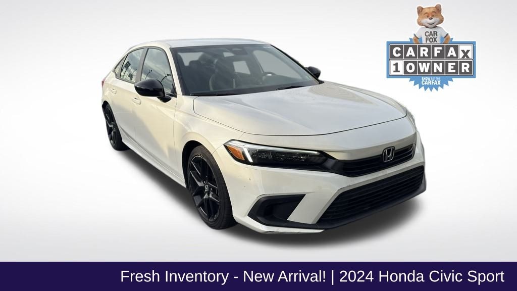 This 2024 Honda Civic Sport delivers sleek styling, exceptional fuel economy, and Hondaâs legendary reliability. Finished in the premium Platinum White Pearl with a sporty black interior, this Civic is a CARFAX 1-Owner, no-accident, well-maintained sedan â" offering incredible long-term value and low cost of ownership.