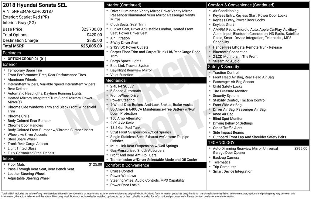 Whether you're commuting to work or embarking on a weekend getaway, this 2018 Hyundai Sonata SEL w/SULEV is the perfect companion. Its combination of style, technology, and performance make it a standout in the midsize sedan segment.